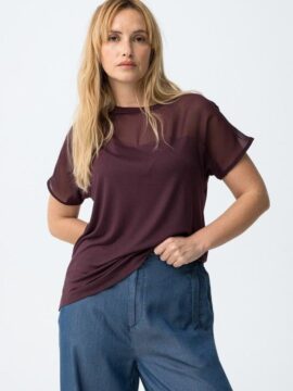 ¡Última! Blusa Con Transparencia Color Burdeos