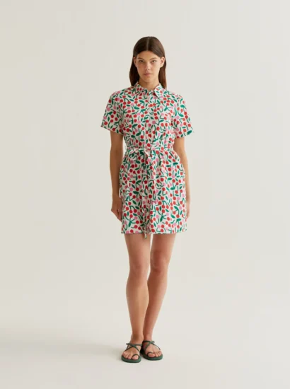 Vestido Camisero Con Estampado Guindas