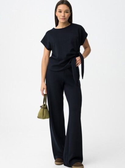 Pantalón Ancho De Punto Azul