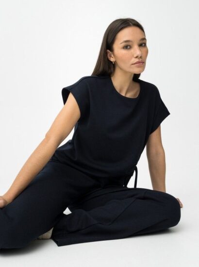 Camiseta Con Mangas Perforadas Azul Oscuro