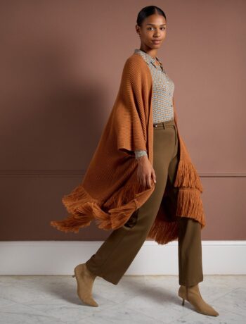 Poncho Tricot Con Flecos Ocre