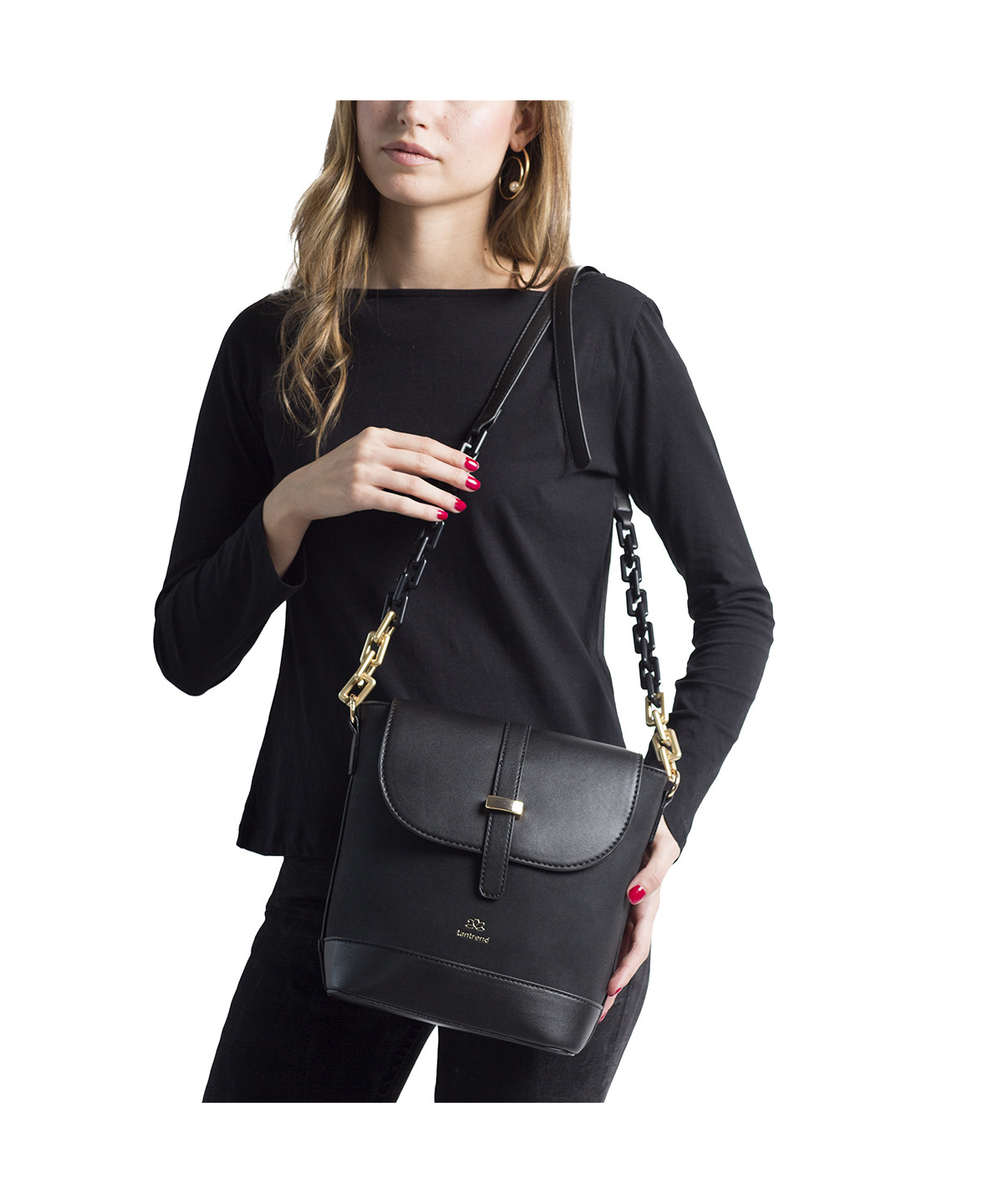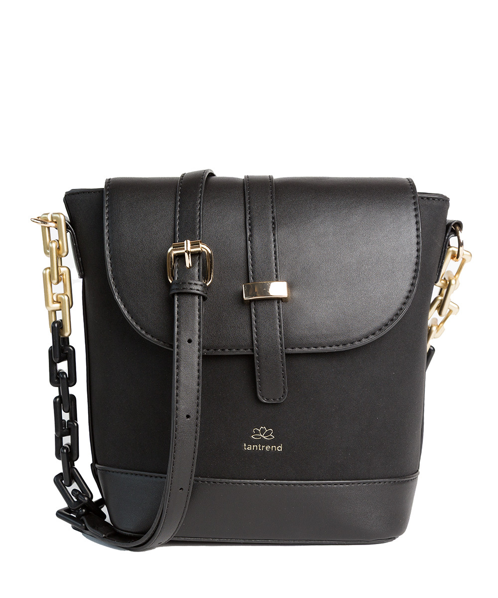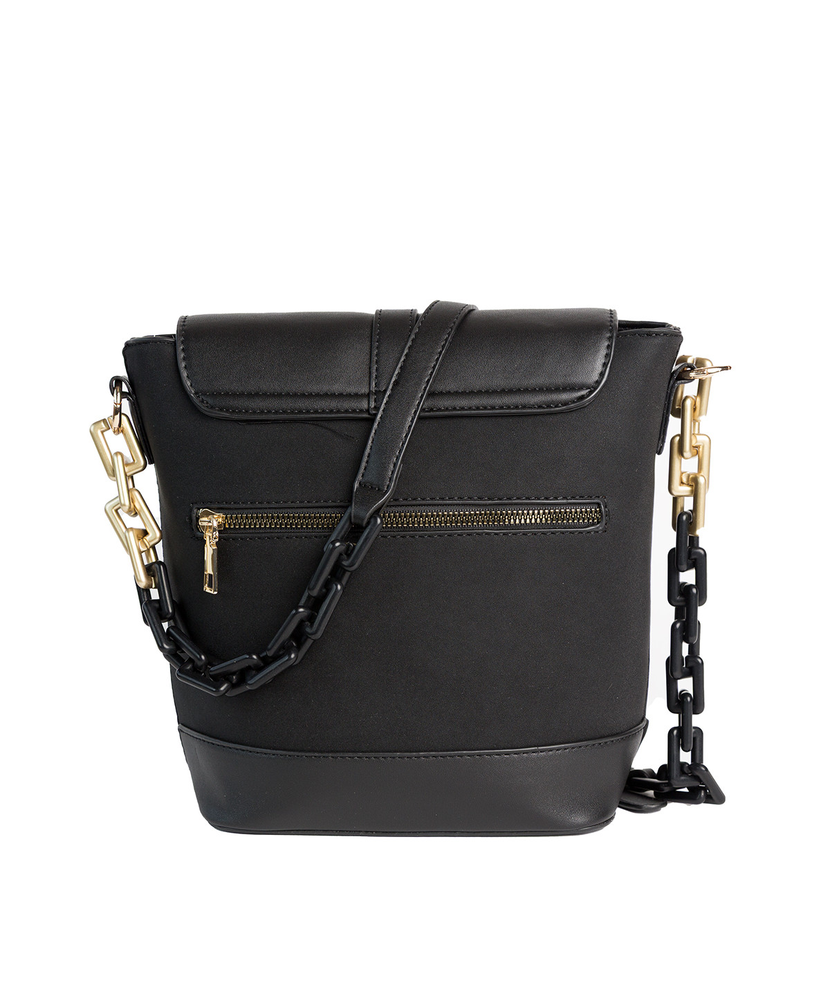 Bolso bandolera en material sintético tipo ante/napa con tapa frontal, asa con eslabones de resina acabado mate y bolsillo en cremallera en parte trasera, en un color: , una pieza. Medidas: 21 x 24 x 11 cm.. Composición: Ext: 100% PU. Int: 100% poliéster.