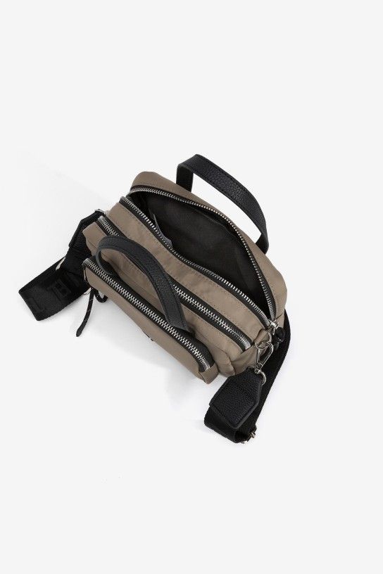 Bolso bandolera de nylon con cierre de solapa magnético. Tres divisiones. Bolsillo interior con cierre. Correa ajustable.