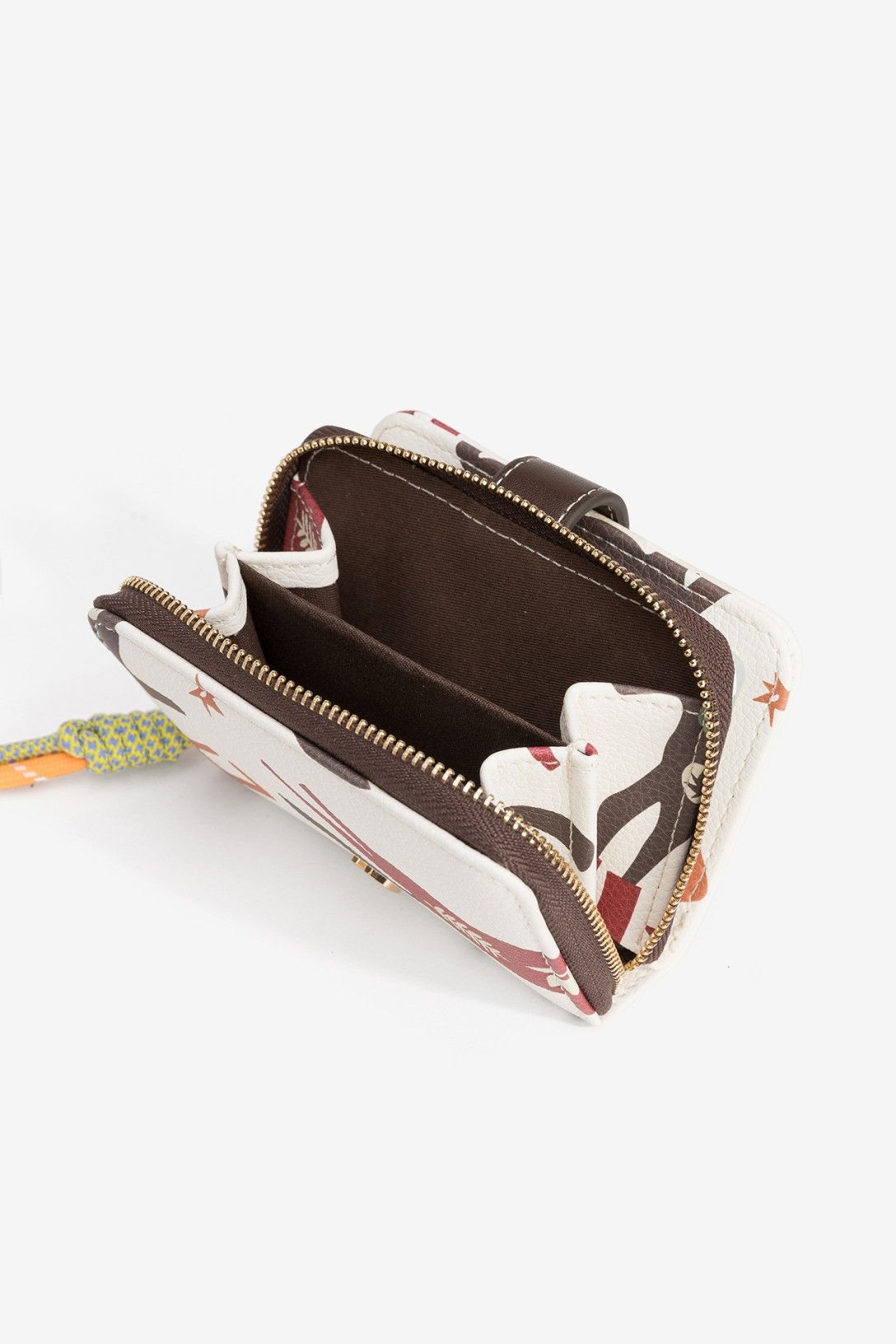 Cartera-Billetera con estampado caballos coloridos y departamentos para monedas, billetes y documentos.