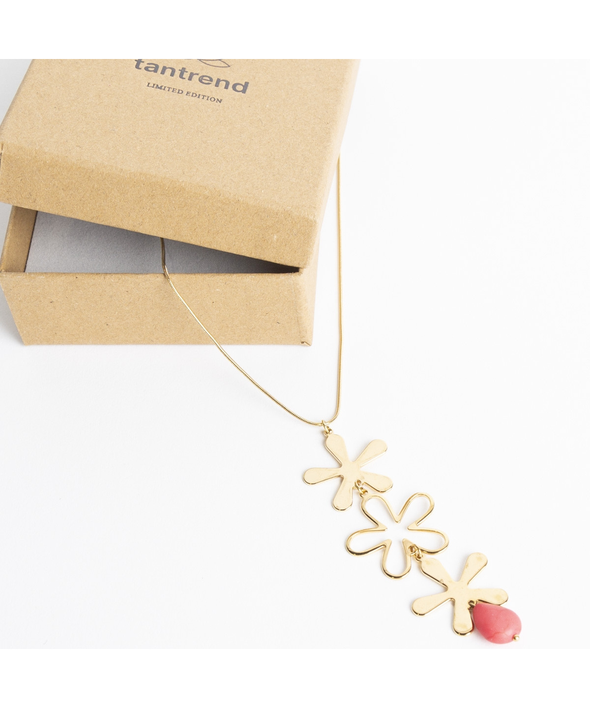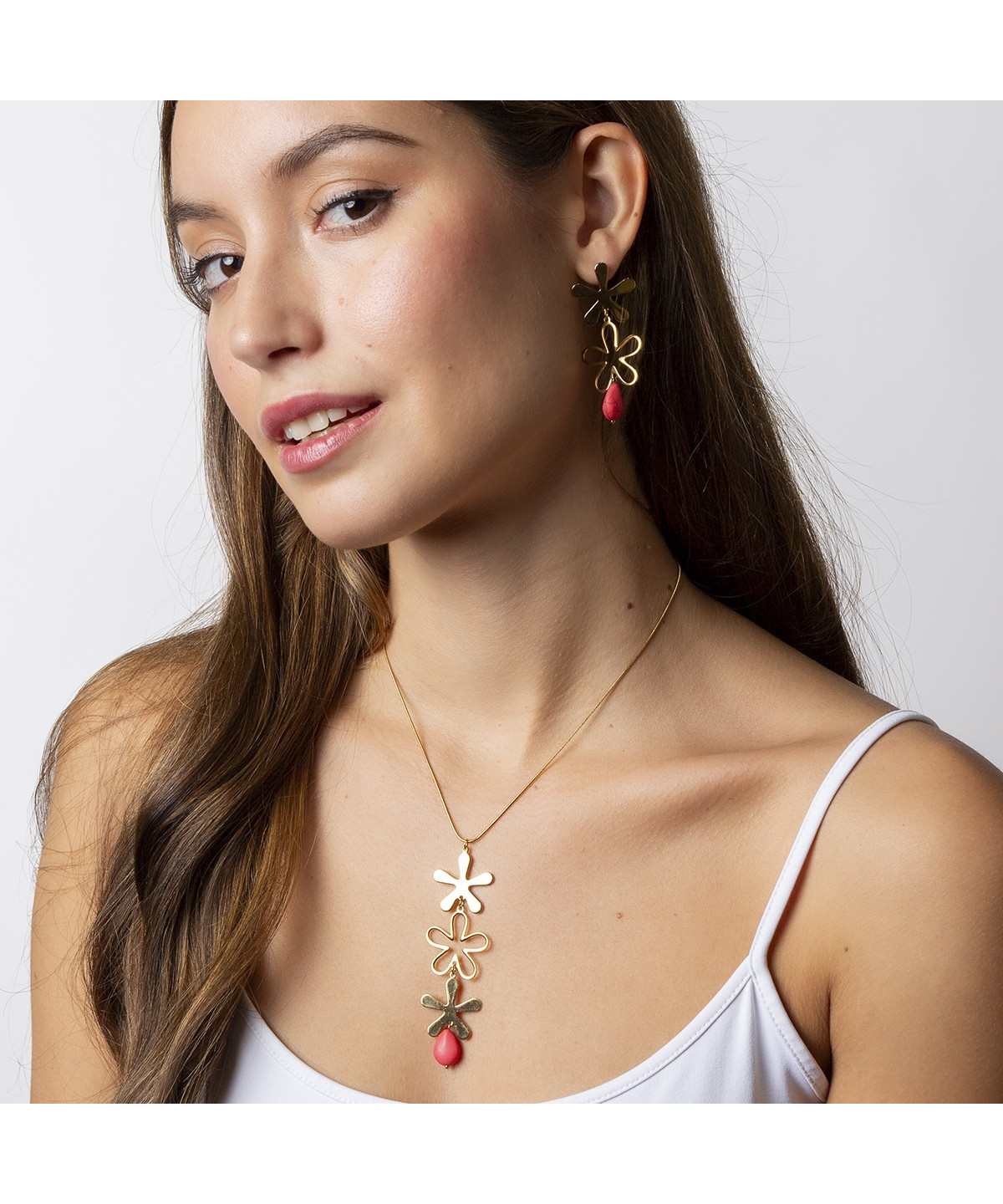Collar en “Y” con cadena de sistema ajustable, con colgante articulado de flores con terminación en piedra natural, en acero inoxidable con baño de oro de 14K, en un color: dorado, una pieza. Composición: piedra, acero inoxidable.