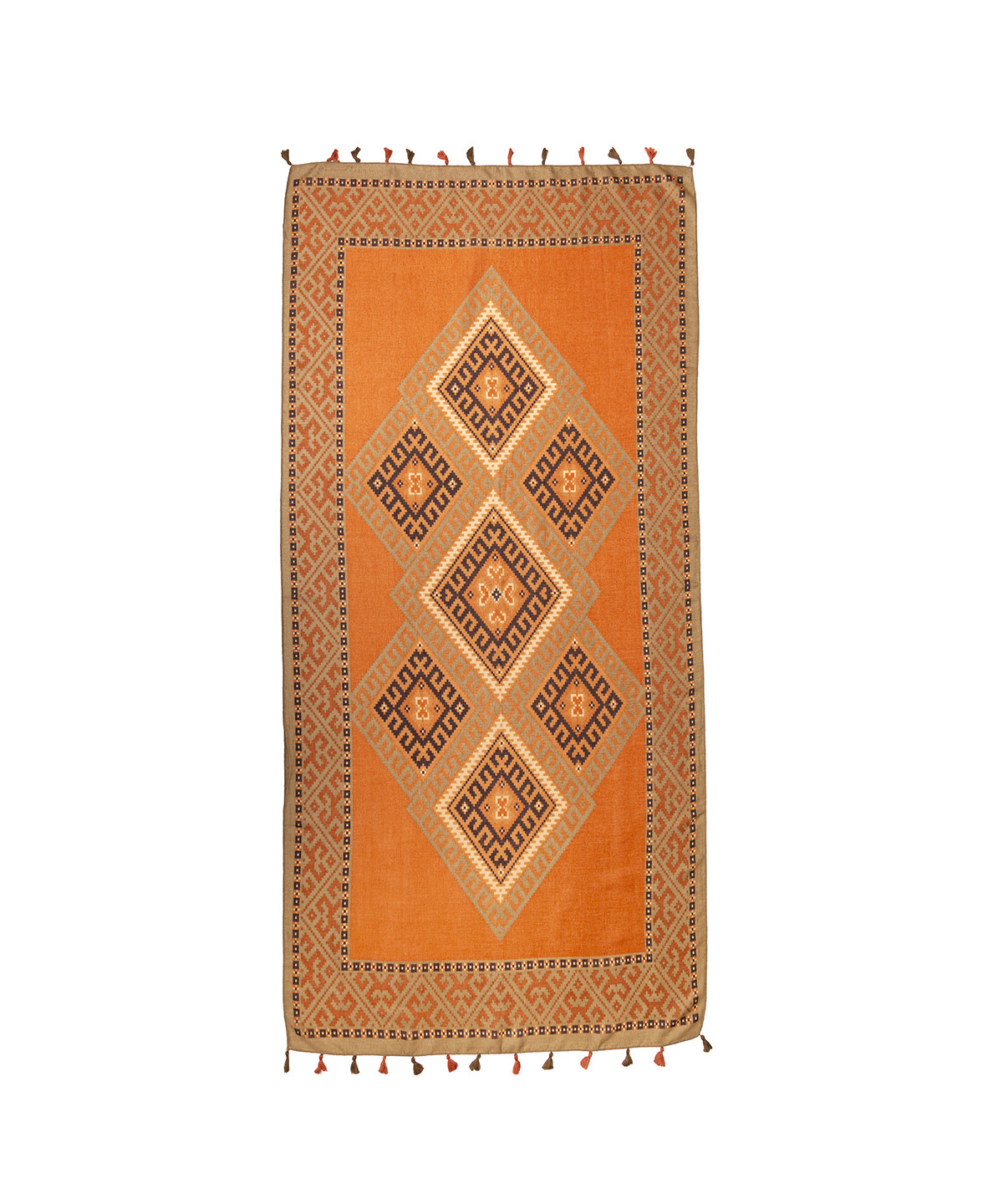 Foulard en tacto suave con mini borlas en dos lados. con dibujo geométrico étnico. en un color: naranja. una pieza. Medidas: 90 x 180 cm. Composición: 100º/ₒ poliéster.
