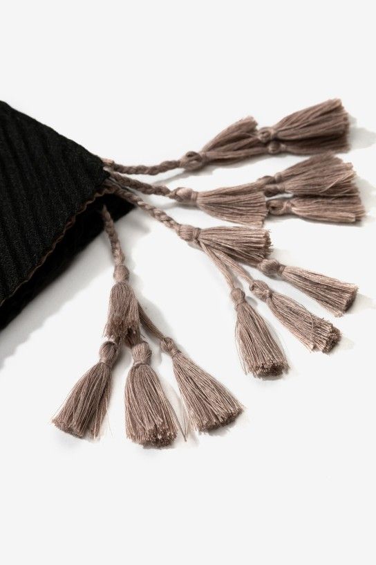 Fular con borlones en tejido bambula. 100% Poliéster.