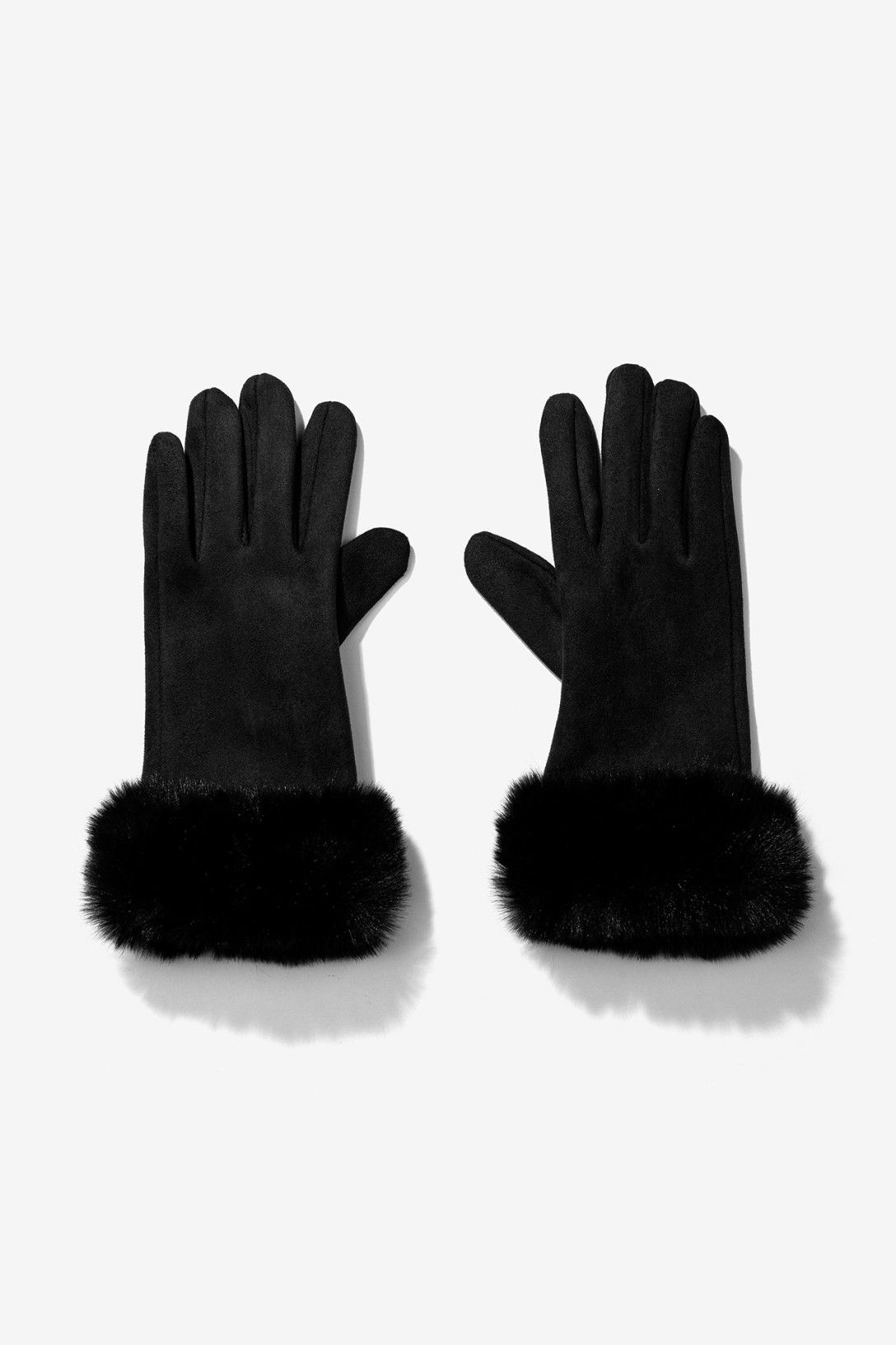 Guantes efecto ante, con detalle de pelo y pantalla táctil en los dedos.