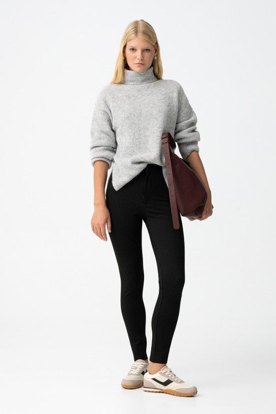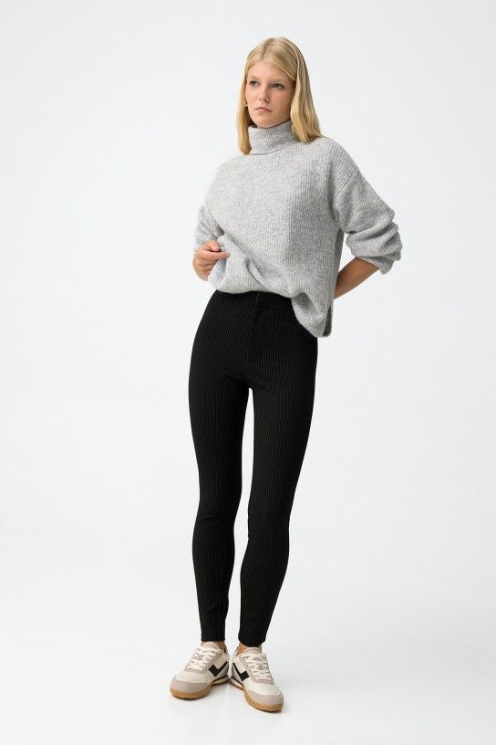 Leggins skinny fit de cintura alta. Tejido elástico con patrón de raya vertical. Cinturilla con elástico interno.