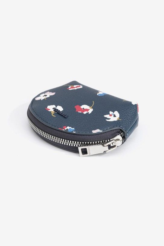 Bolsita efecto piel con estampado floral y cierre superior de cremallera.