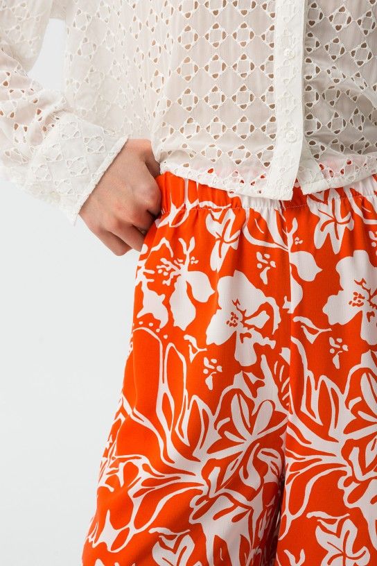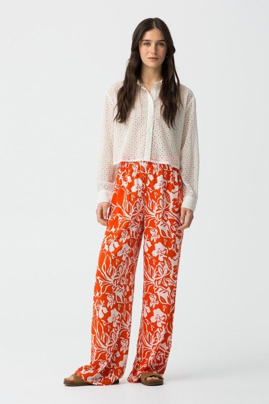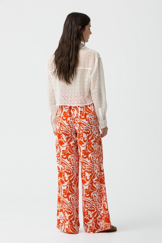 Pantalón fluido de talle alto con cinturilla elástica. Todo impreso.