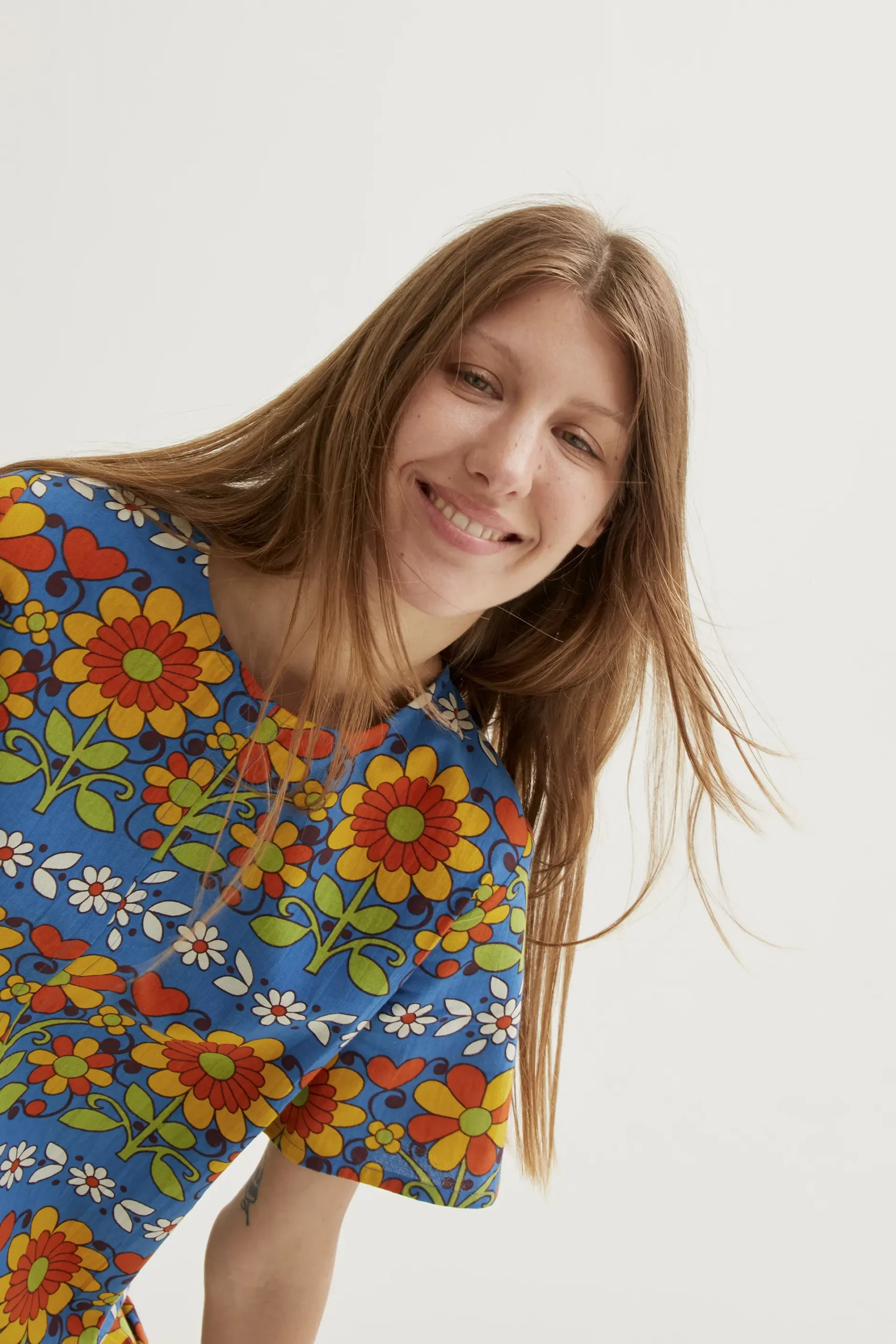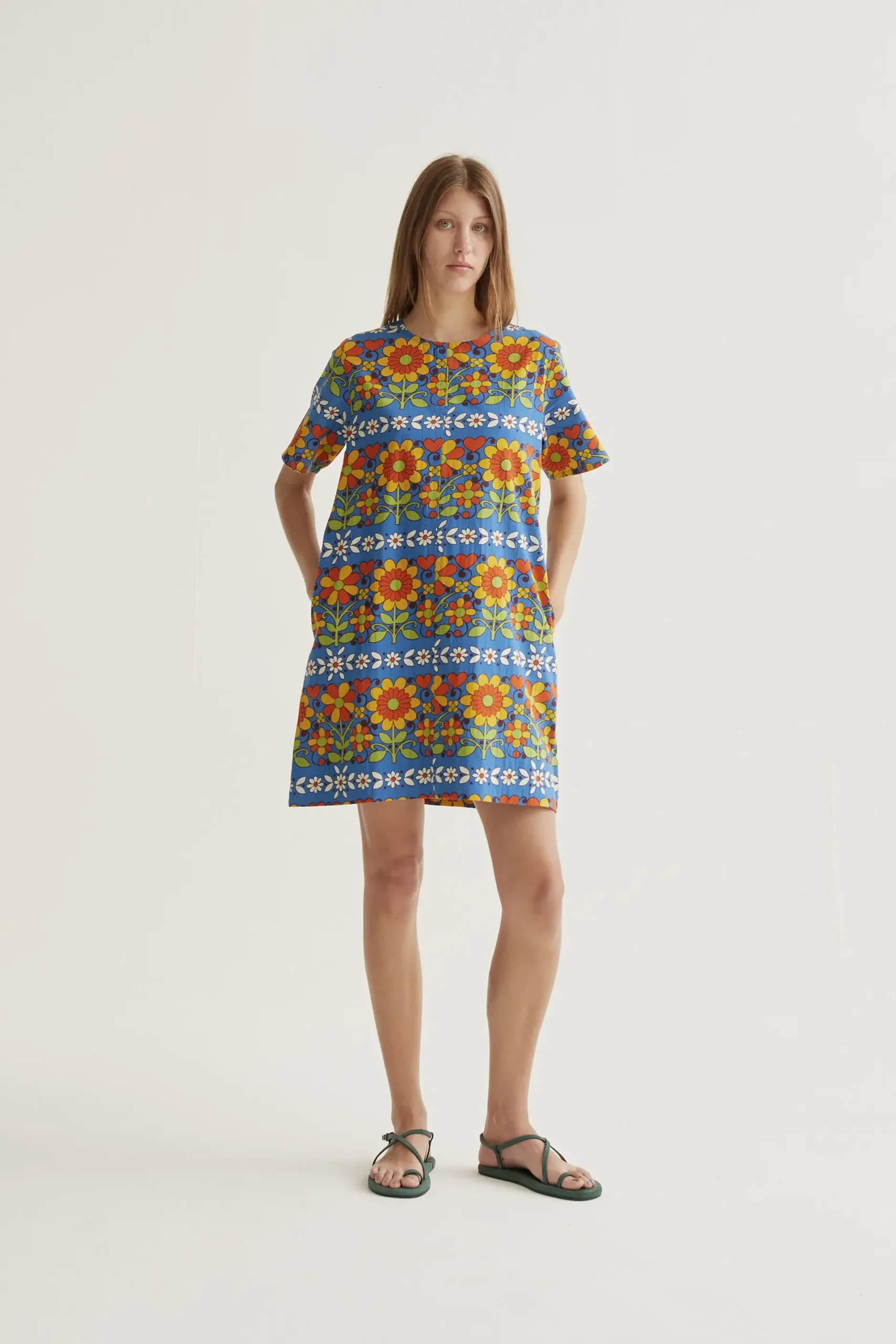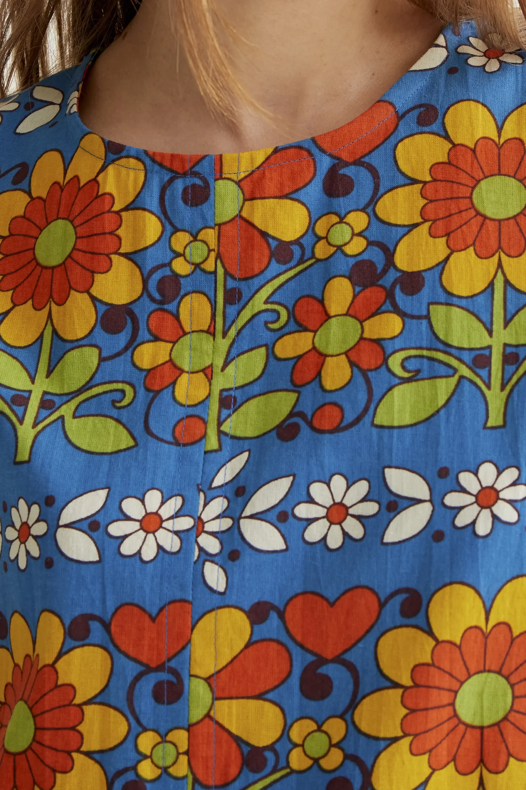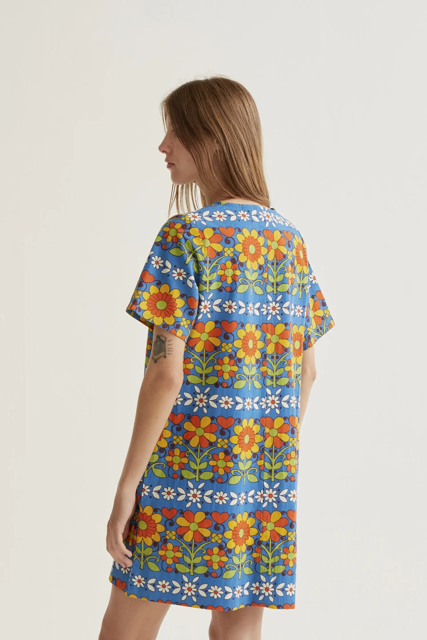 Vestido evasé con bolsillos laterales y estampado floral. 100% Algodón.