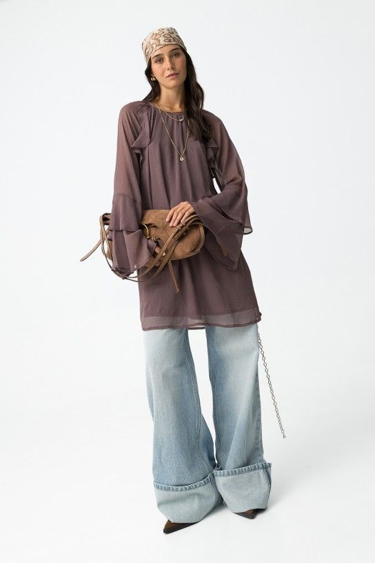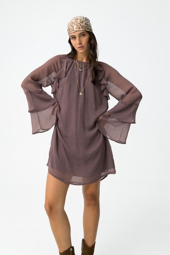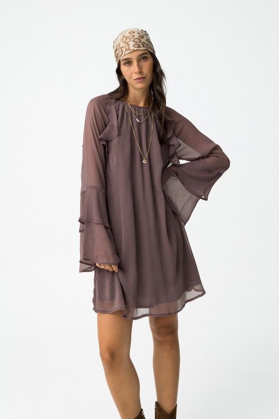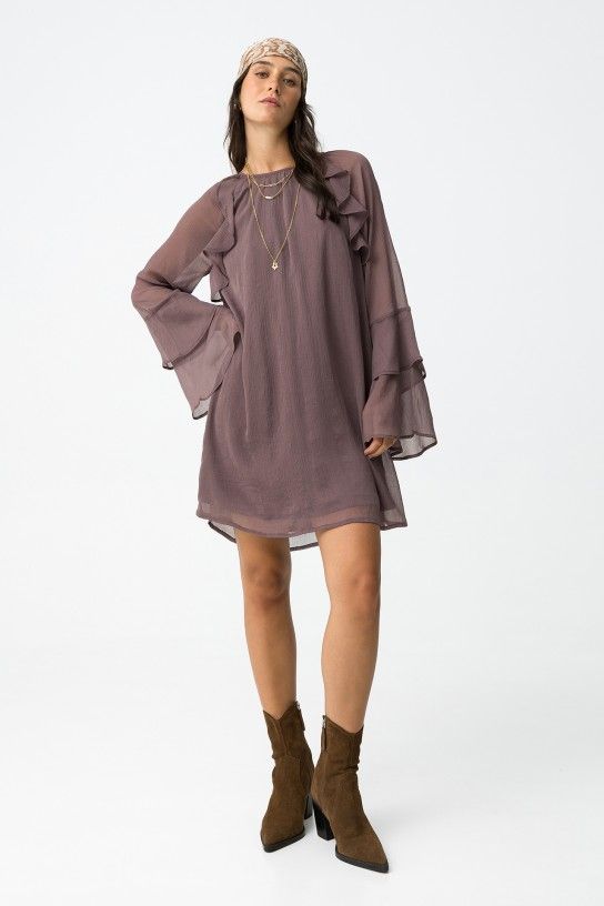 Invierno marrón moda nuevacoleccion otoño poliester tiffosi vestido vestidosedita volantes