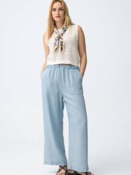• Pantalón Celeste Con Elástico En Cintura Pantalón Celeste Con Elástico En Cintura