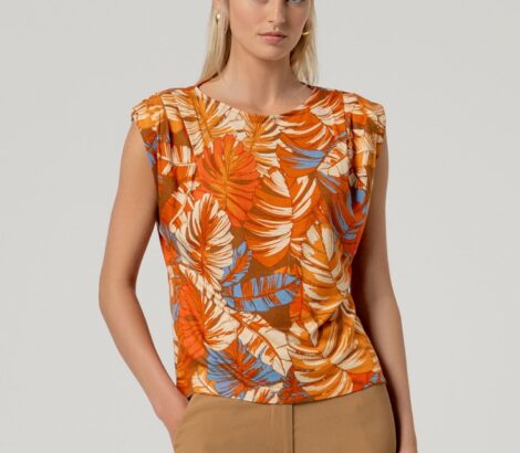 Top Con Drapeado En Hombros Tropical