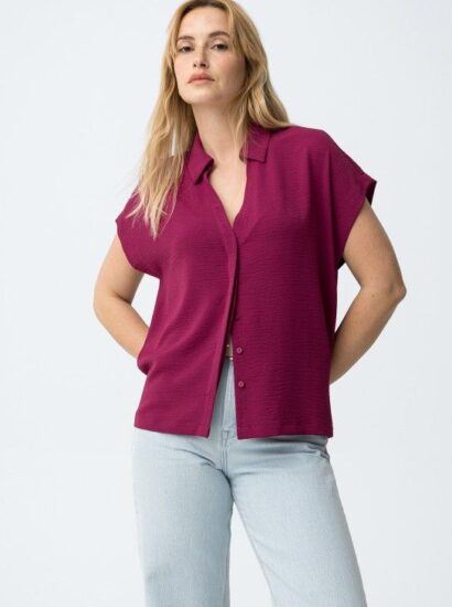 • Camisa Color Fucsia Con Botones Ocultos Camisa Color Fucsia Con Botones Ocultos
